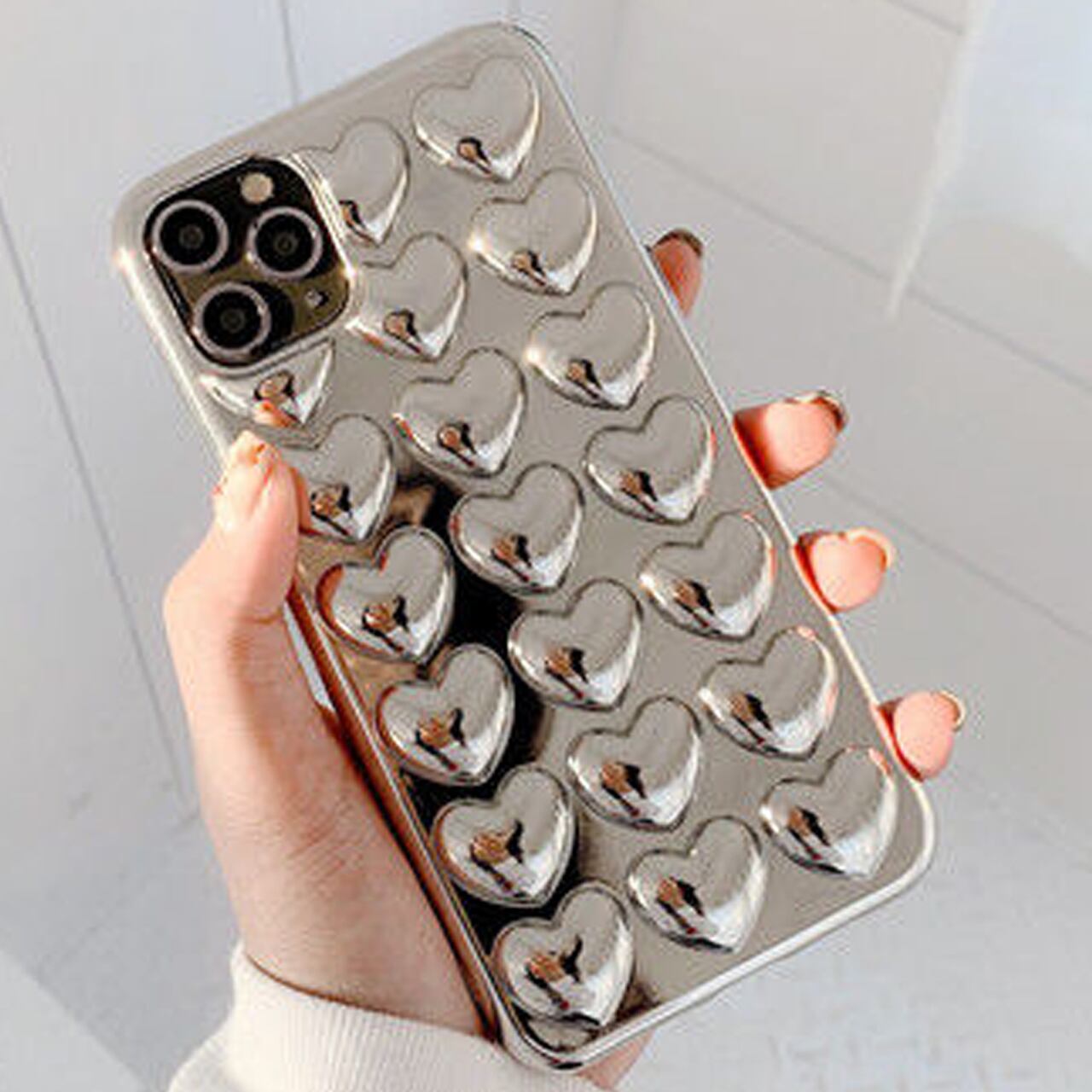 iPhoneケース☆彡 ハート3Dシルバー/ローズゴールド