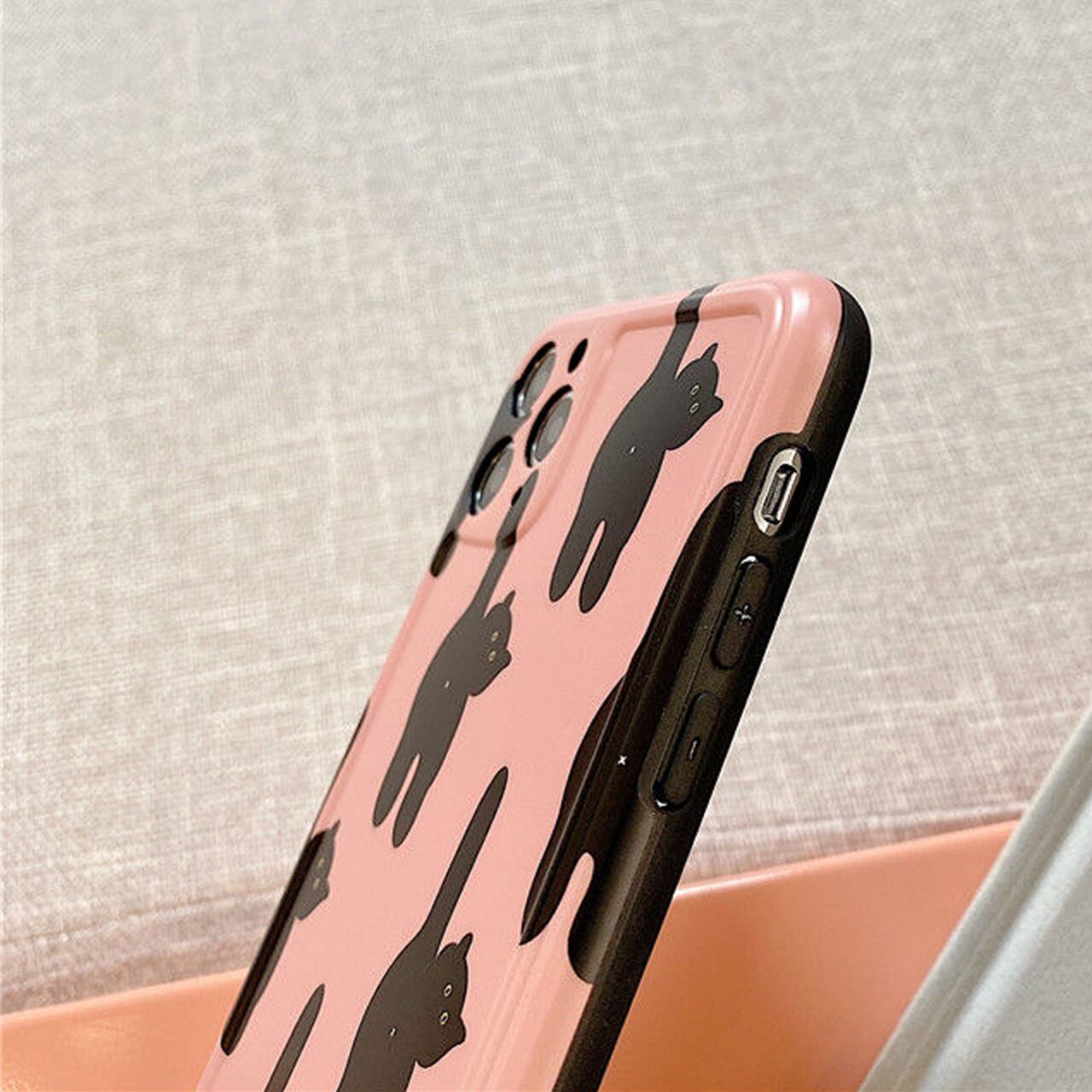 黒猫ピンク総柄iPhoneケース M0606-26