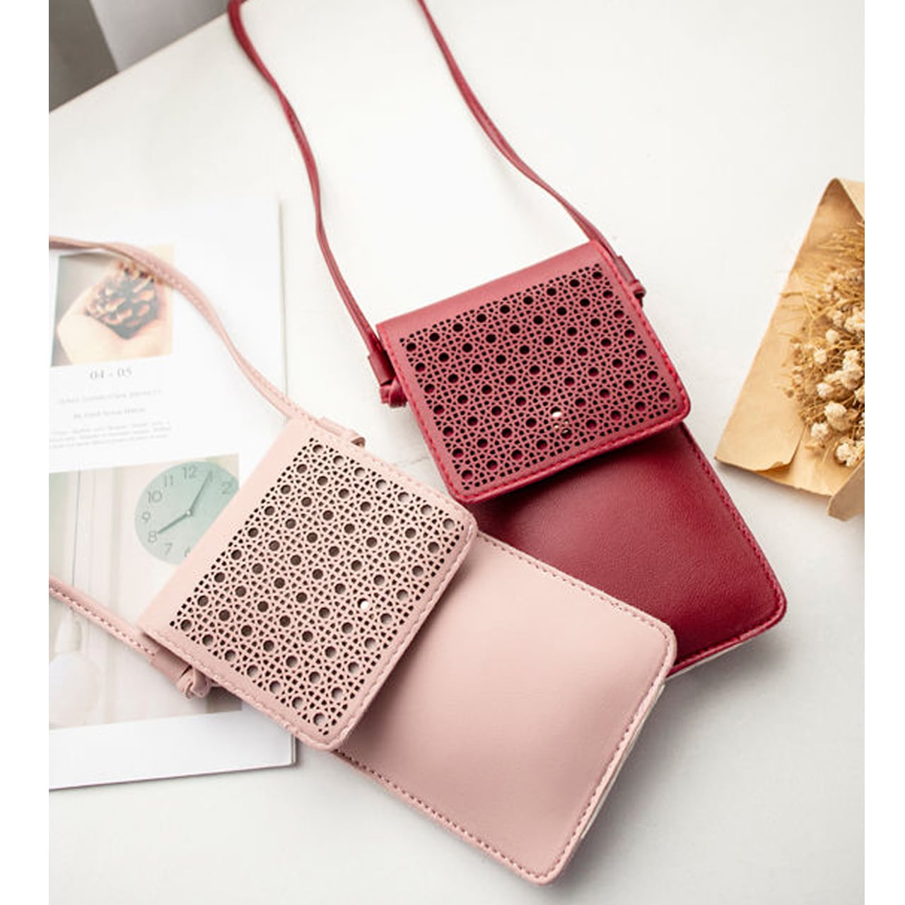 スマホポーチ☆透かし柄 入れたままタッチ!M0707-01