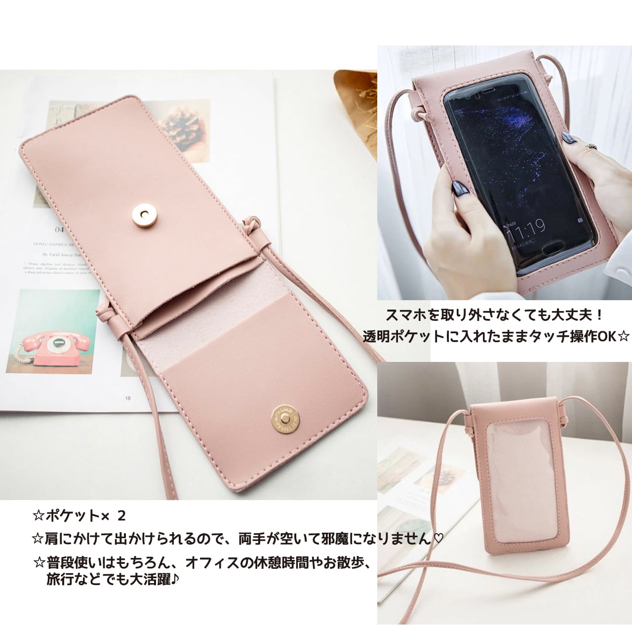 スマホを入れたまま、タッチ操作ができて便利!