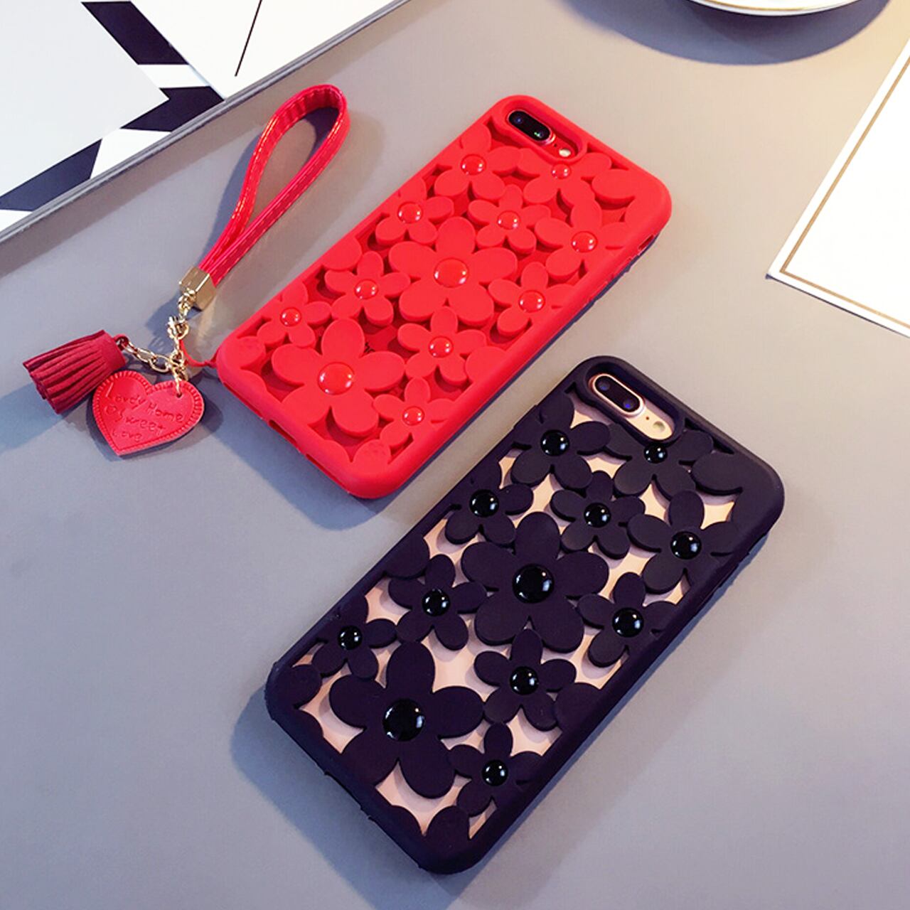 シリコンの立体フラワーモチーフのケースです♪