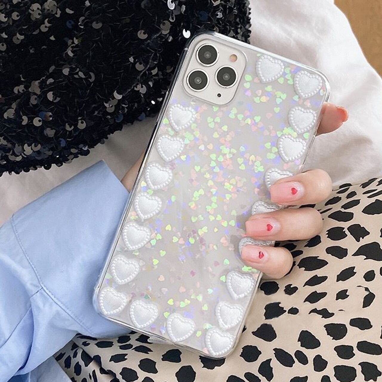 クリアケースで、ぷくっとした♡で縁取り♪真ん中はオーロララメのキラキラが入っています~♪