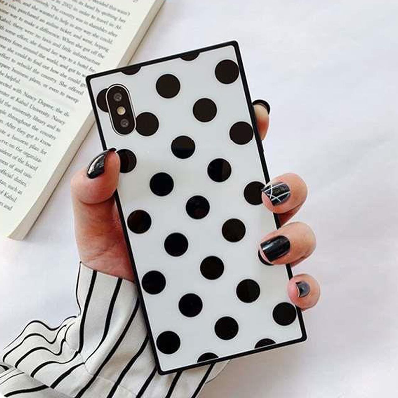 白黒モノトーンのドット柄ケース♪