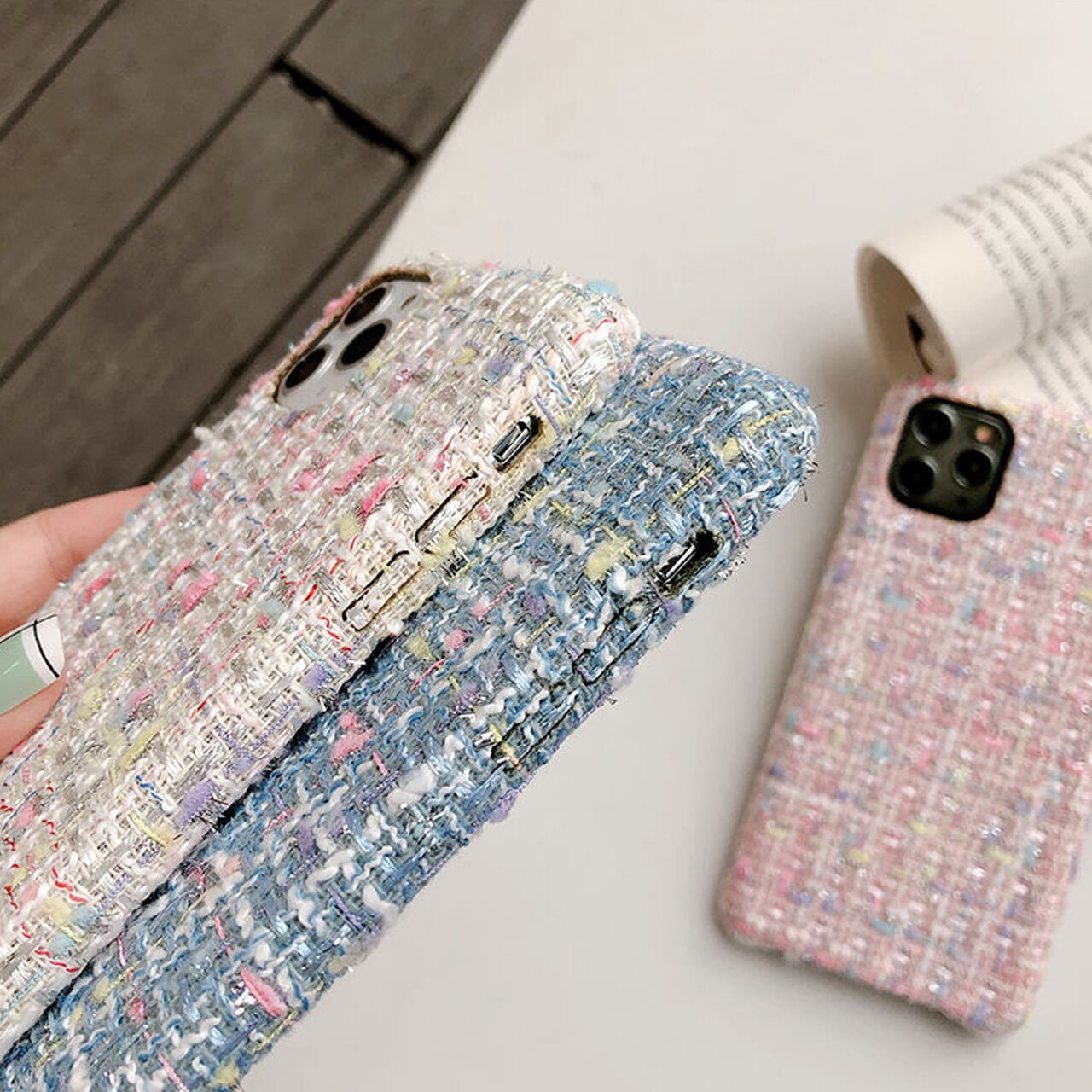 カラーの太糸で縦横に織られた布で包んだ女子ケース~☆