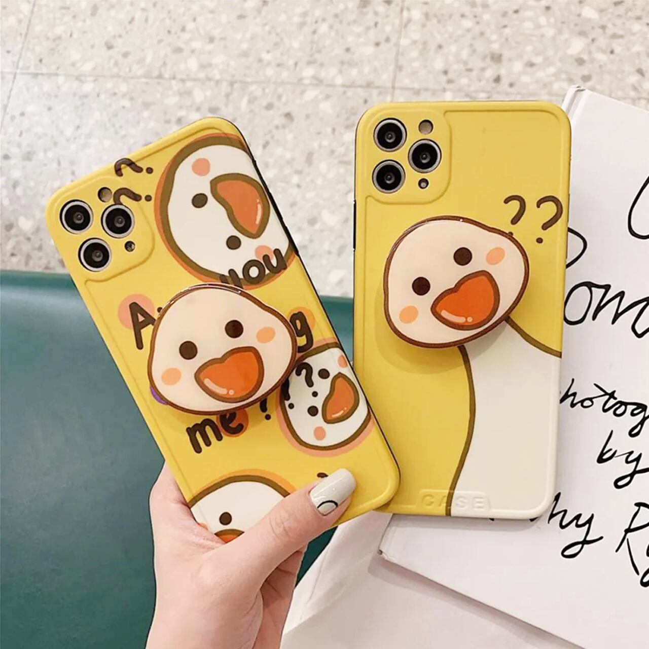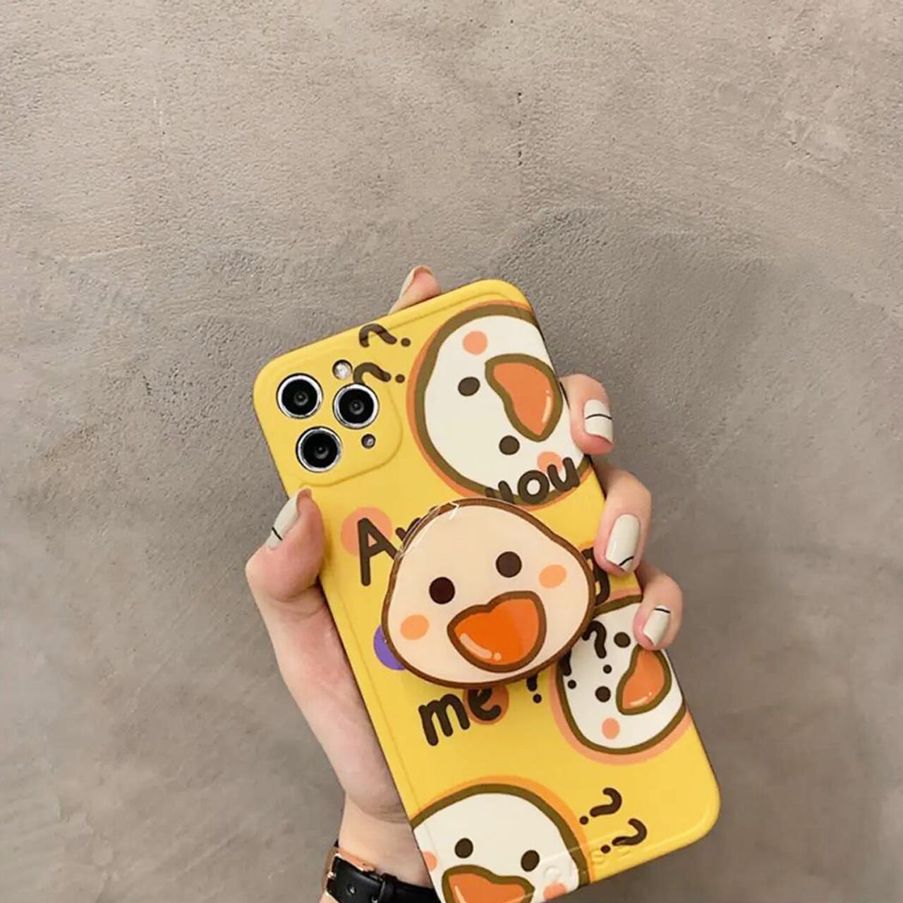 アヒルケースにグリップ付けるのもったいないけど、付けたら立体的でもっと可愛い~