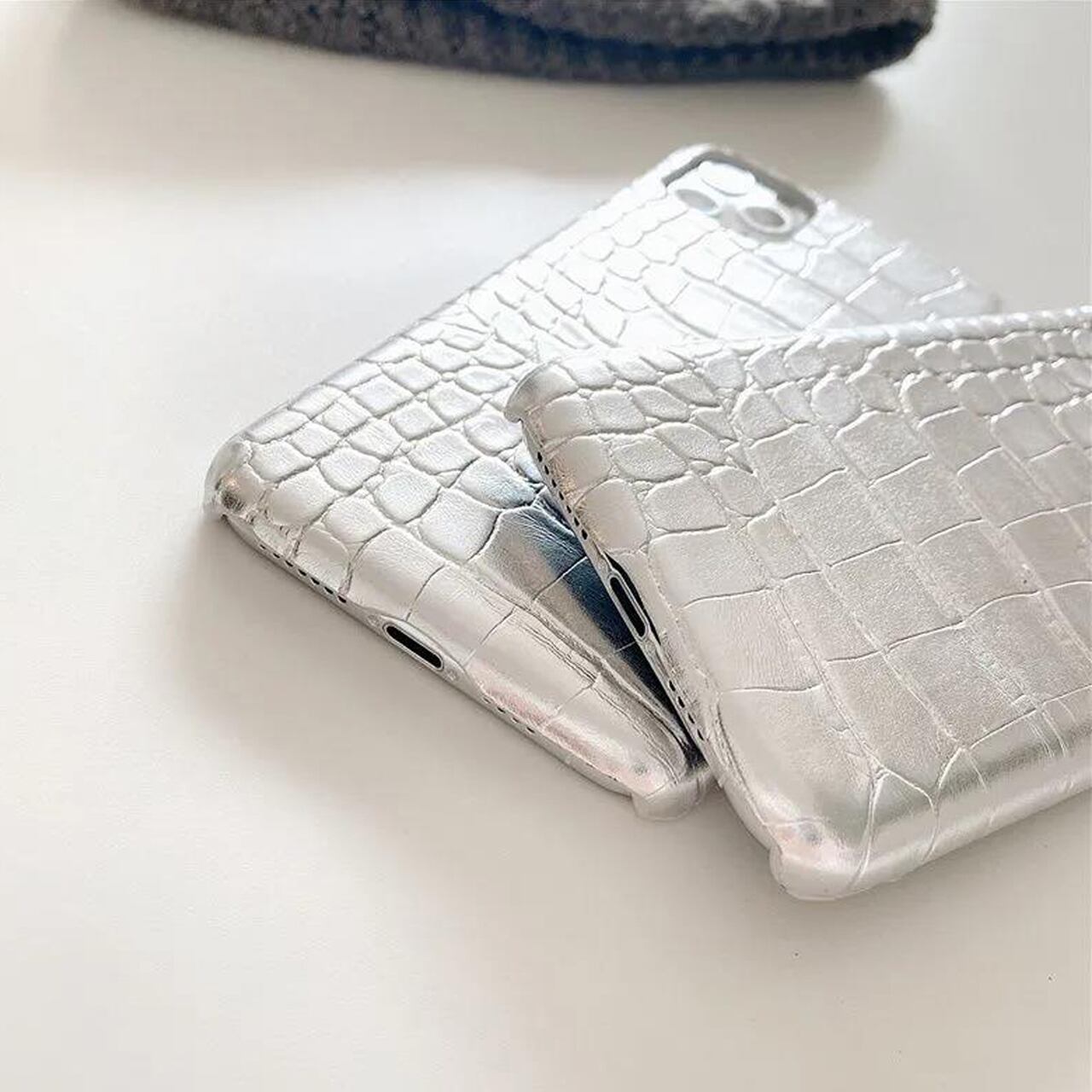 iPhoneケース☆彡 クロコ調シルバー