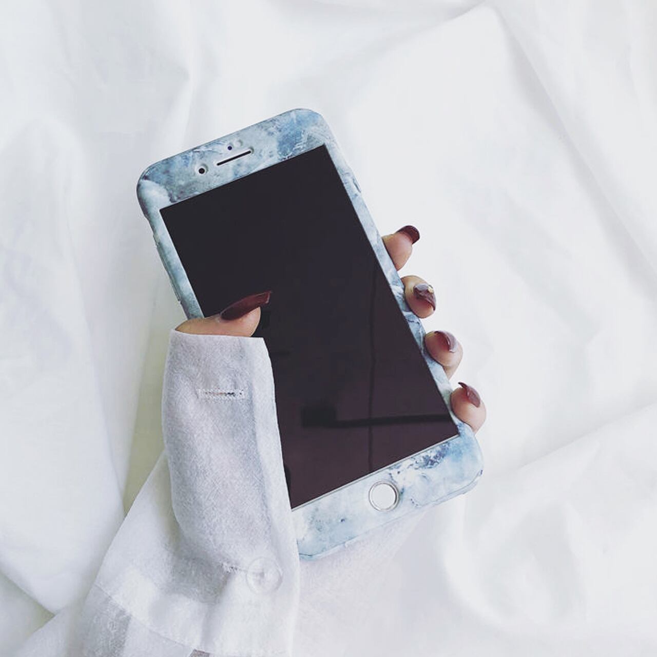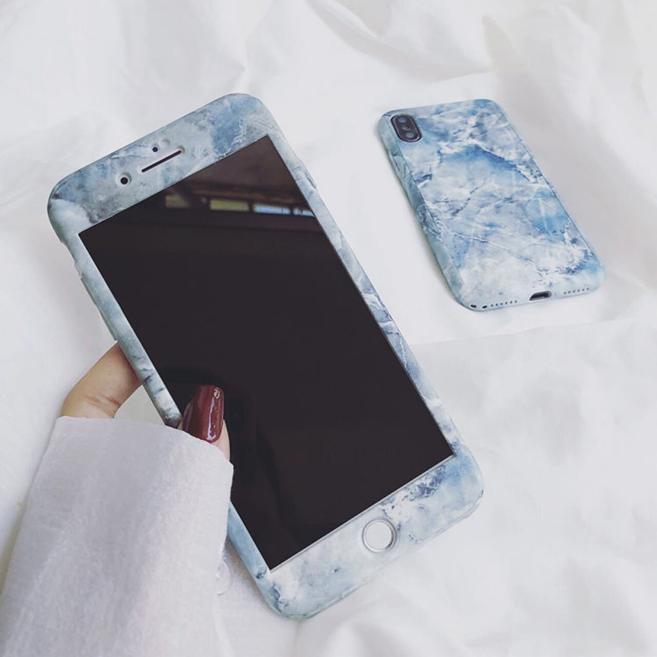 iPhoneケース☆彡 大理石柄サックス