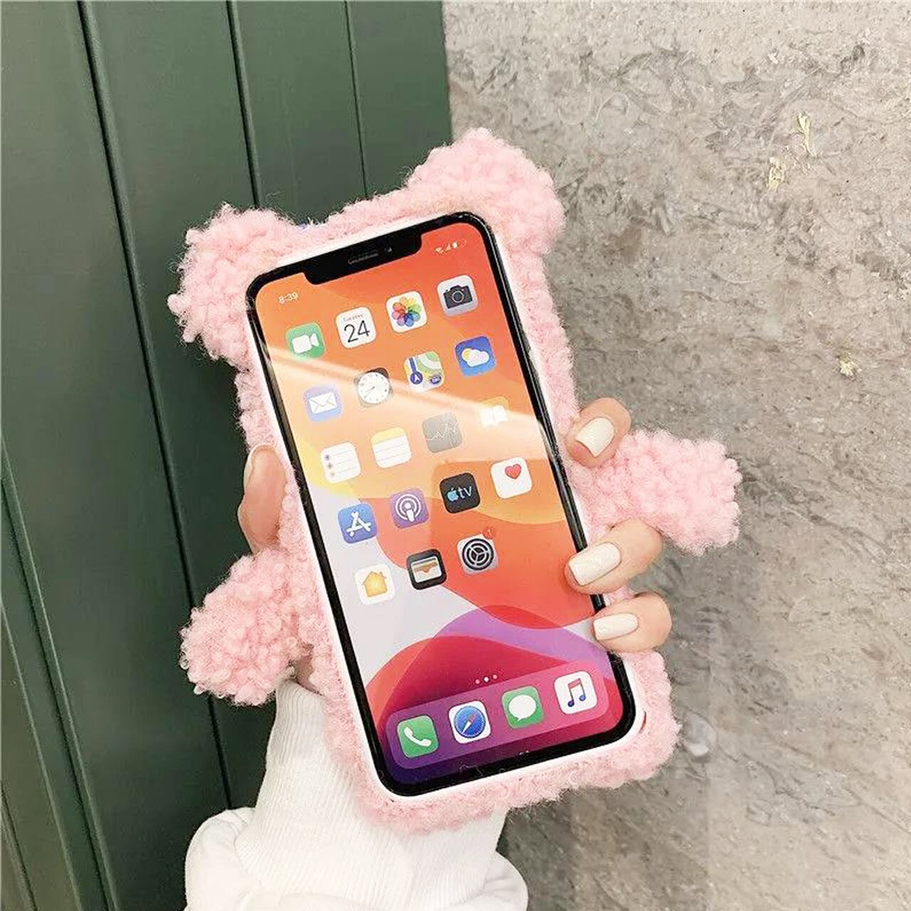 iPhoneケース☆彡 もこもこBEARピンク紫