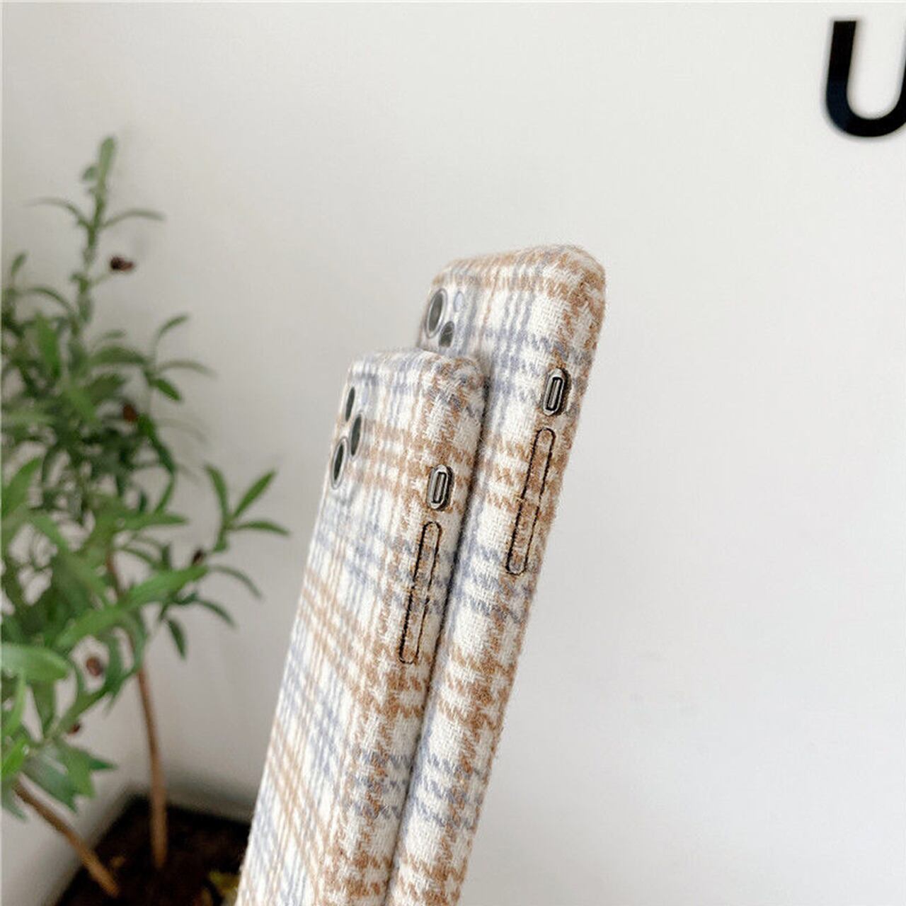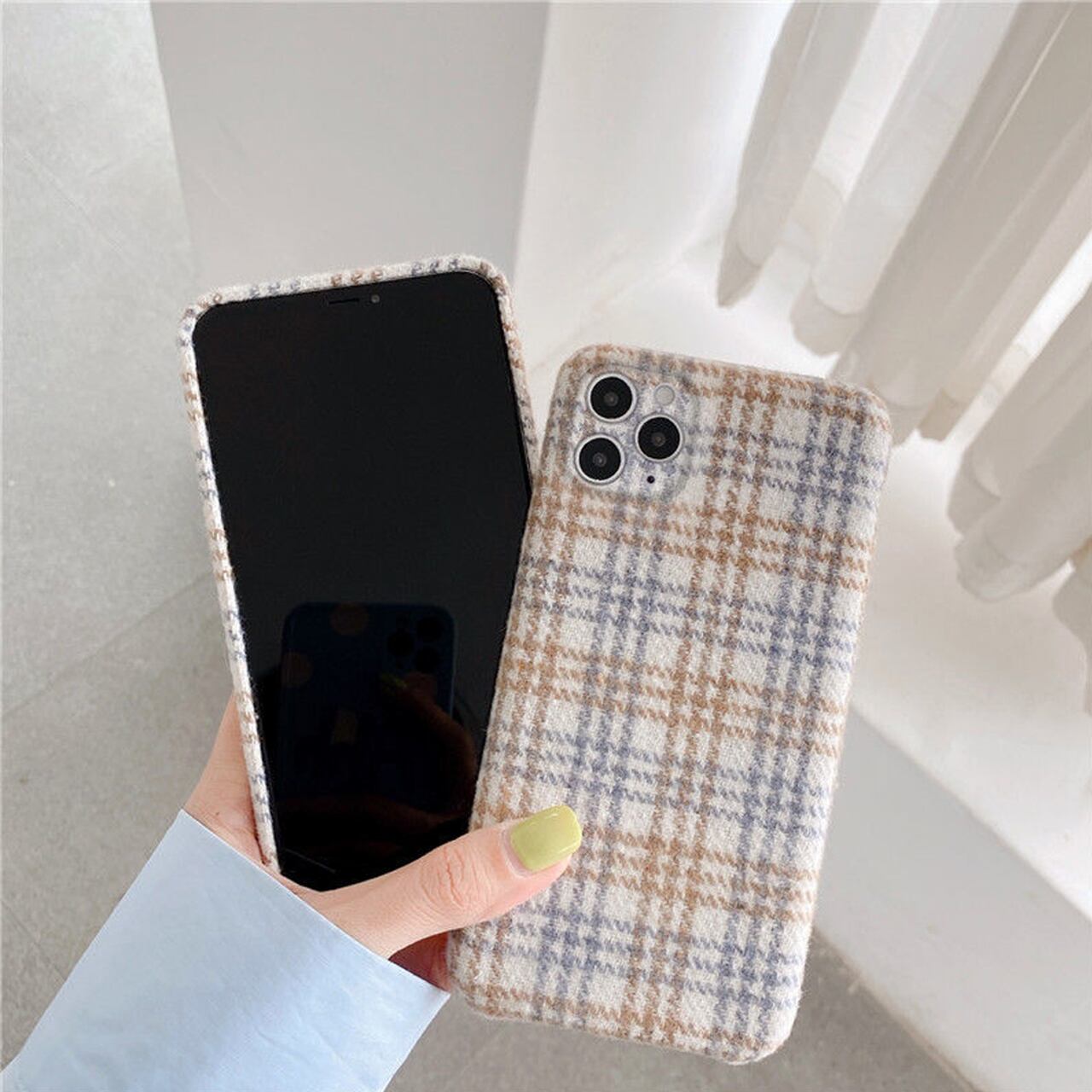 レトロな少し起毛のあるチェック生地で包まれたスマホケース~