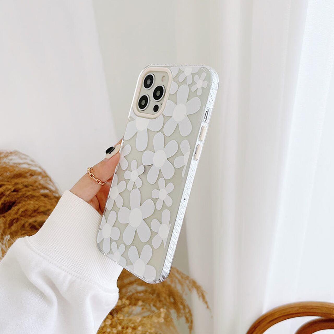 iPhoneケース☆彡 ホワイト花
