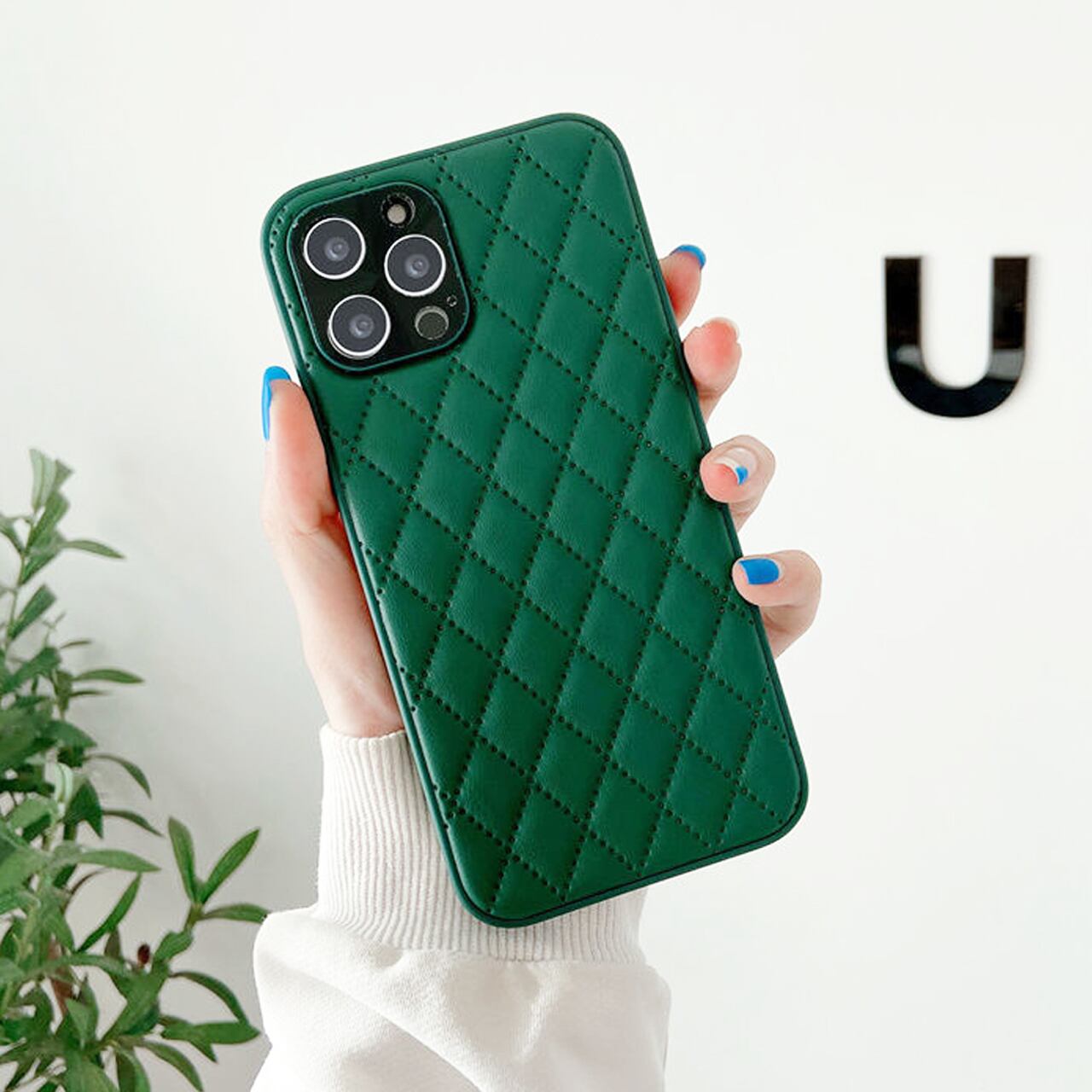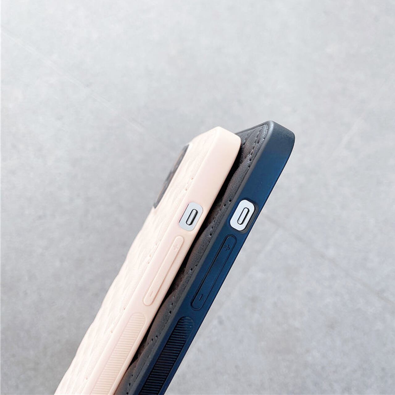 背面側は、キルティングっぽいダイヤ柄で型押しされた感じで、高級感あります。