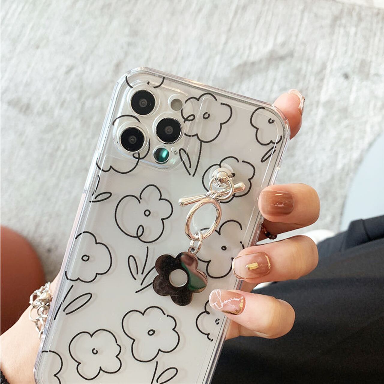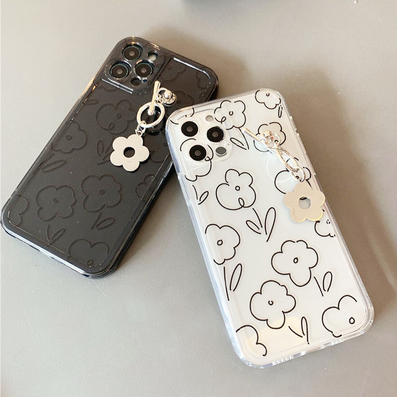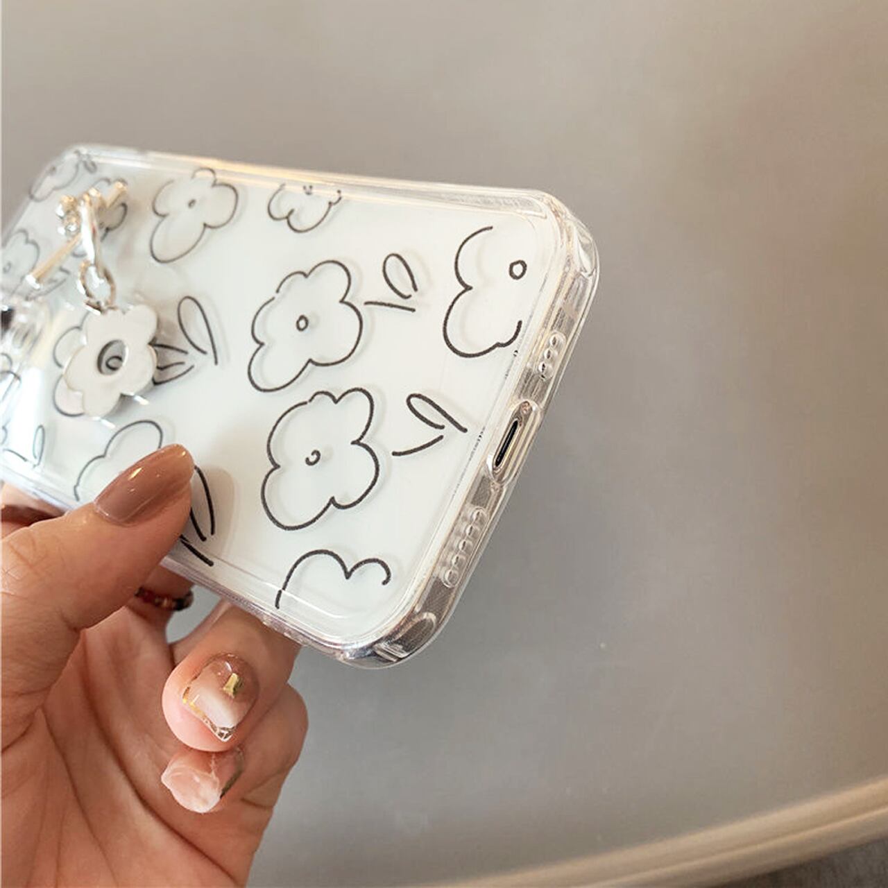 iPhoneケース☆彡 ライン花キーリングハンガー