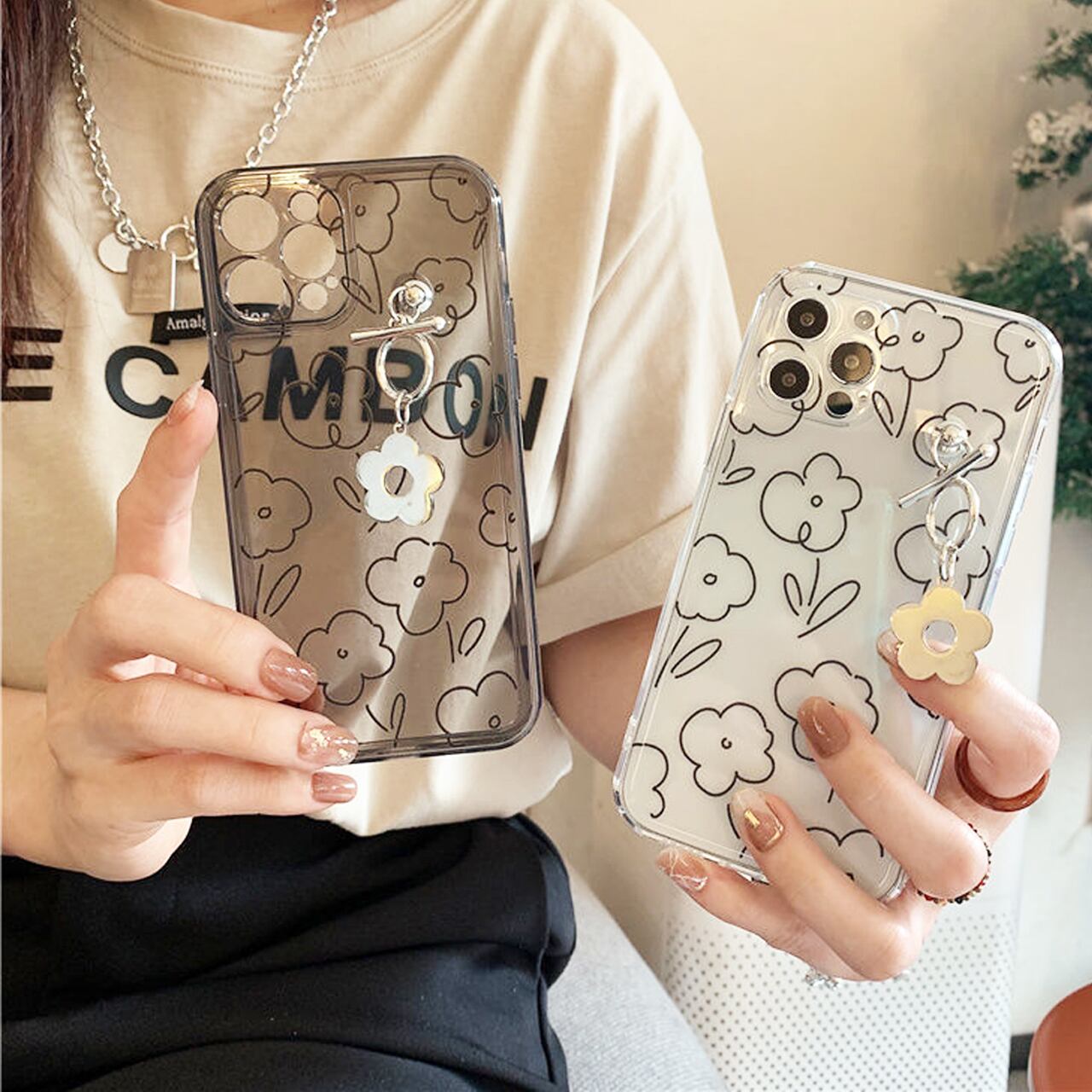 ライン花キーリングハンガー iPhoneケース M210606-30
