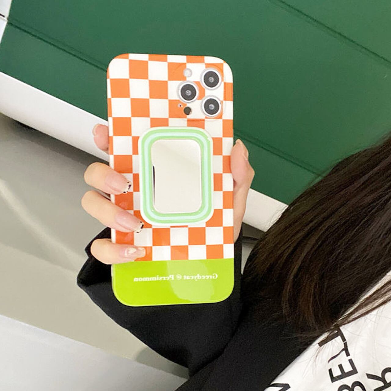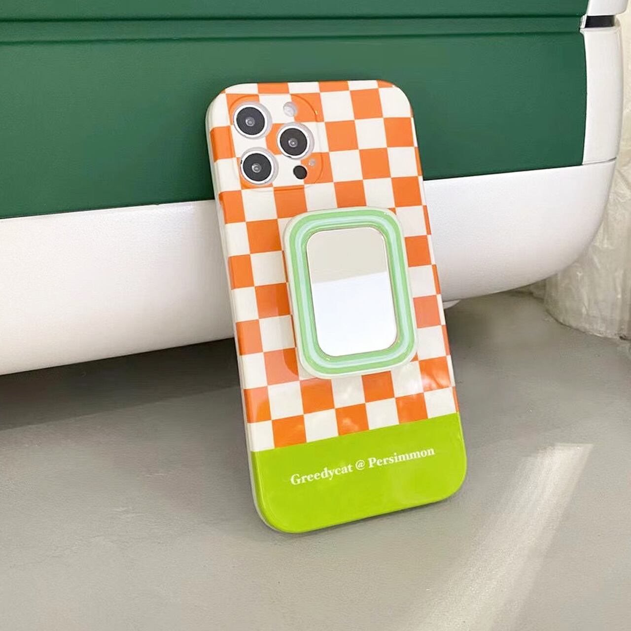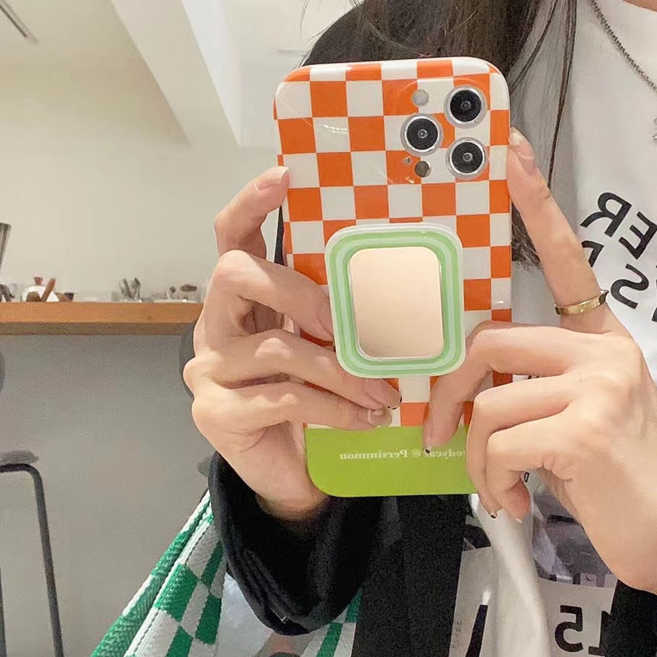 市松模様ミラーグリップiPhoneケース M210707-19