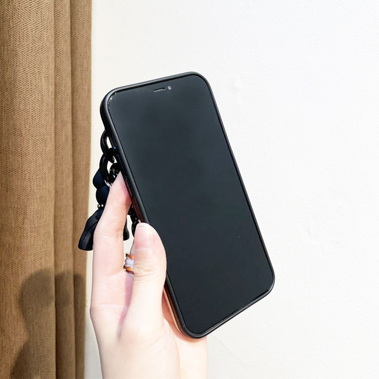 iPhoneケース☆彡 フレブルチェーン付白黒