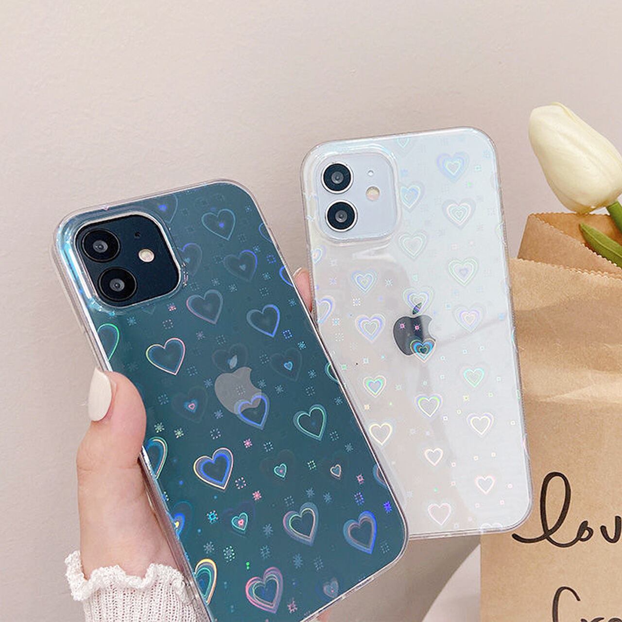 光や角度によってオーロラにかわるキラキラケース♥