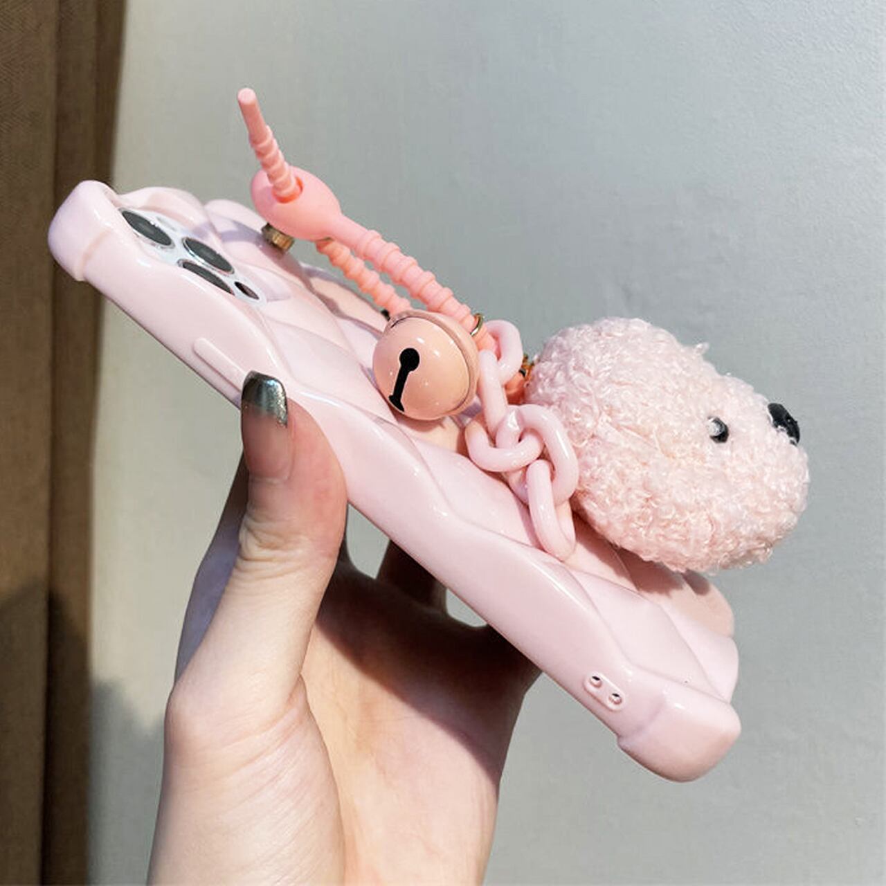 iPhoneケース☆彡 キルト柄ピンクDOGキーリング