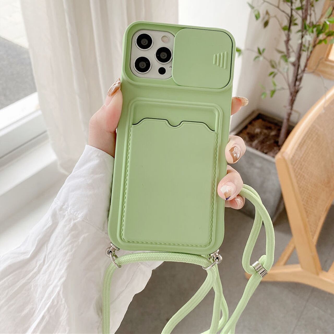 iPhoneケース☆彡 カードケースストラップ付8COL