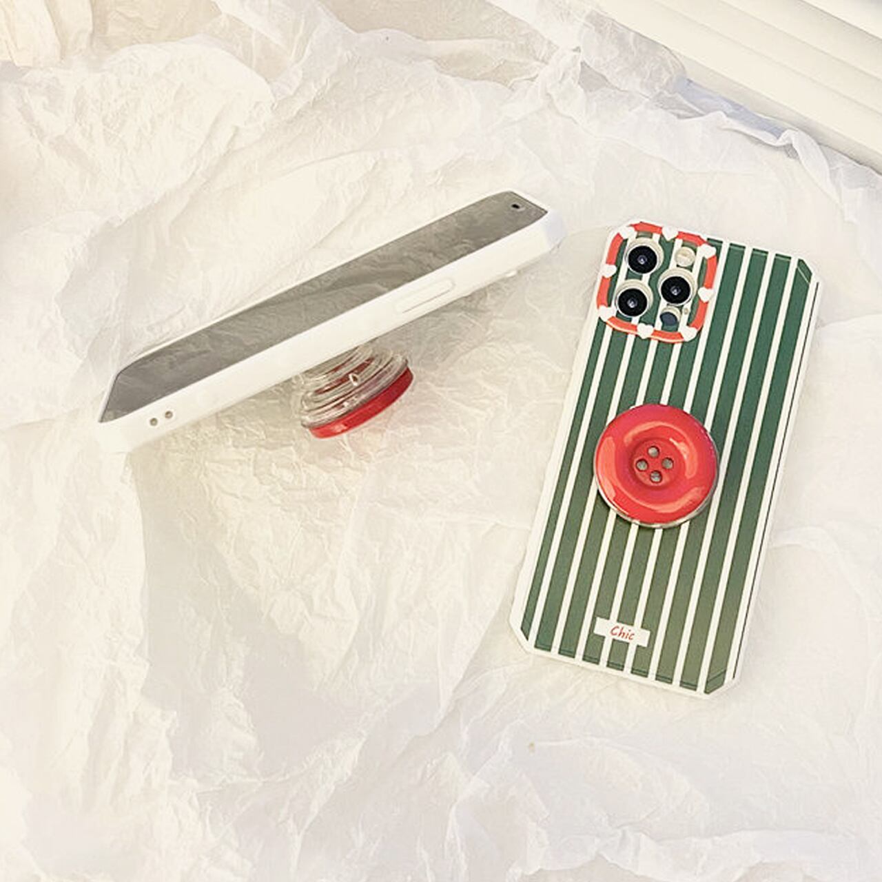 iPhoneケース☆彡 buttonグリップ付ストライプ