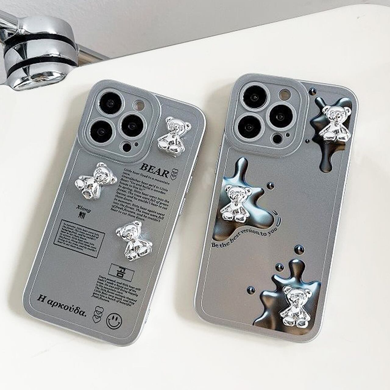 iPhoneケース☆彡 BEAR立体シルバーMAT