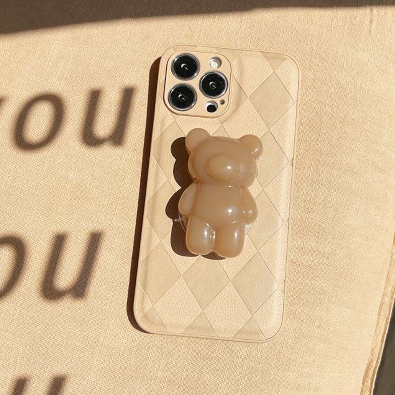 iPhoneケース☆彡 BEARベージュグリップ付き