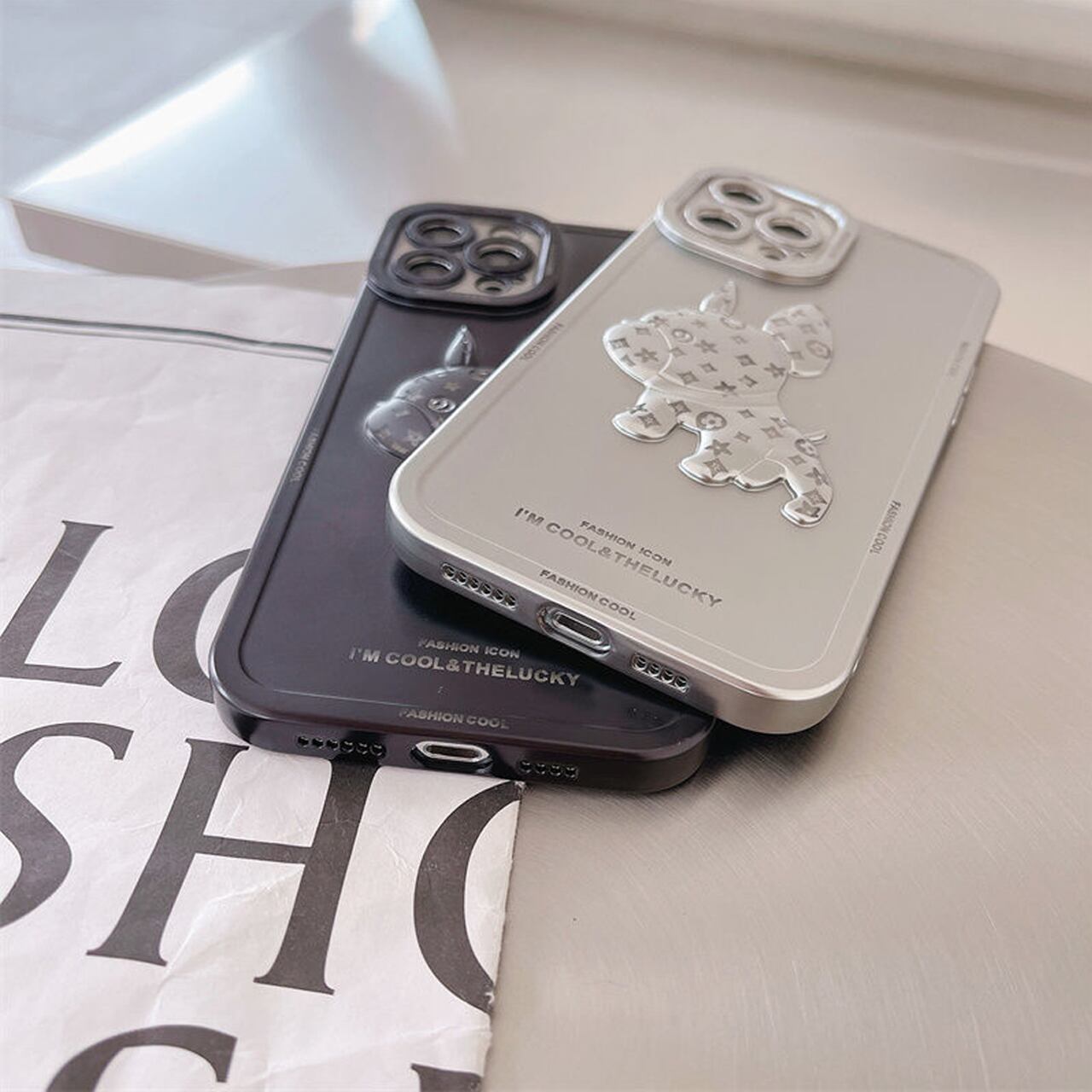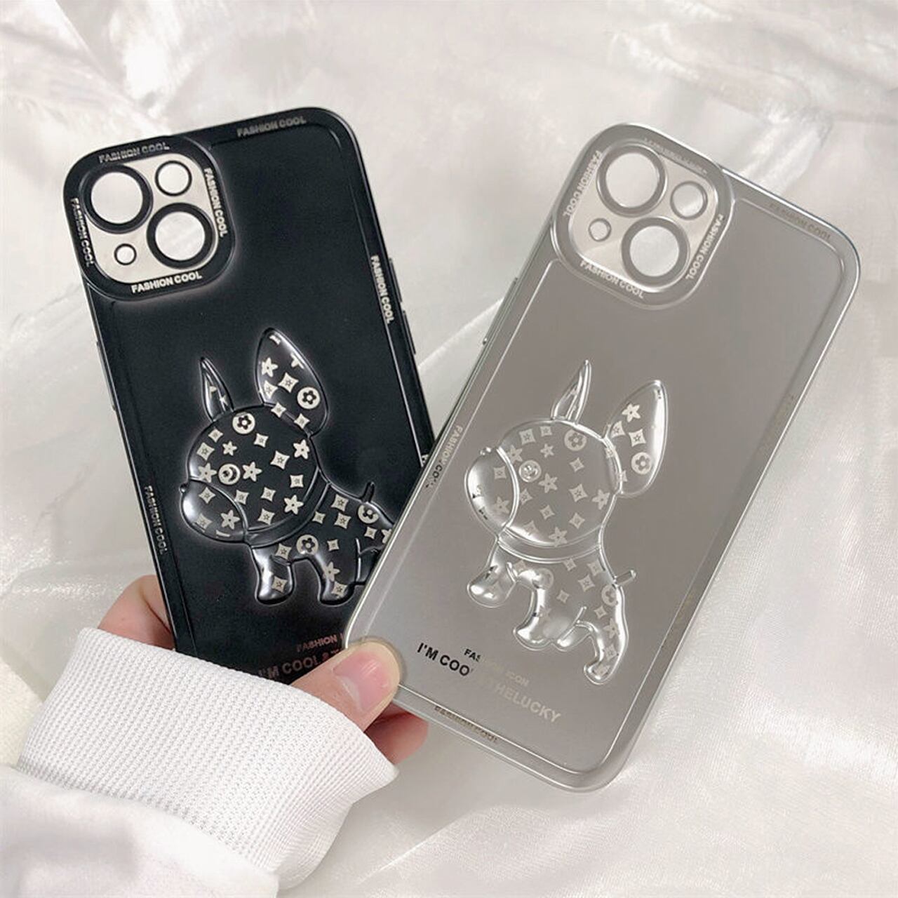 立体DOGシルバーMAT iPhoneケースM211212-21