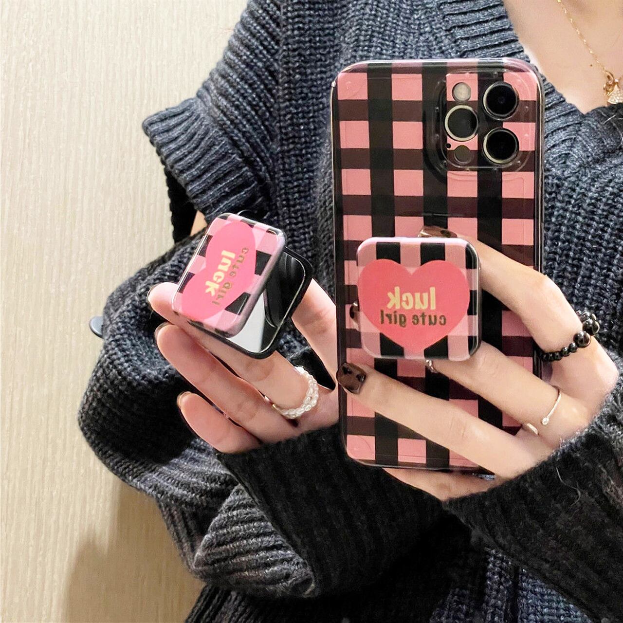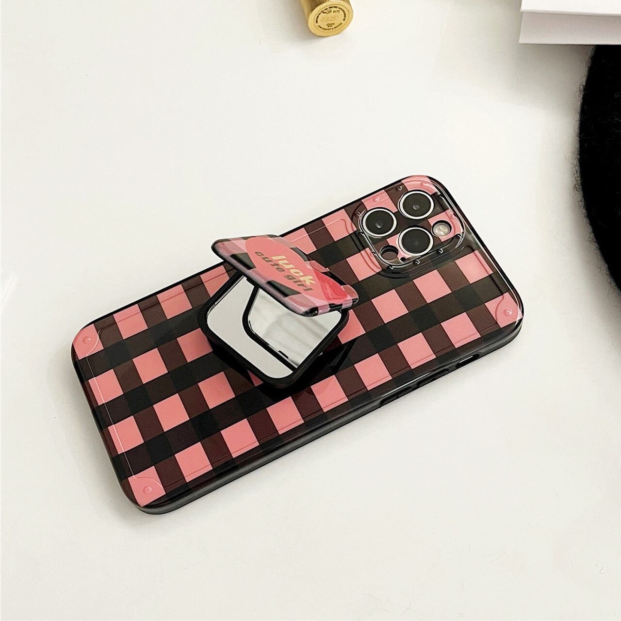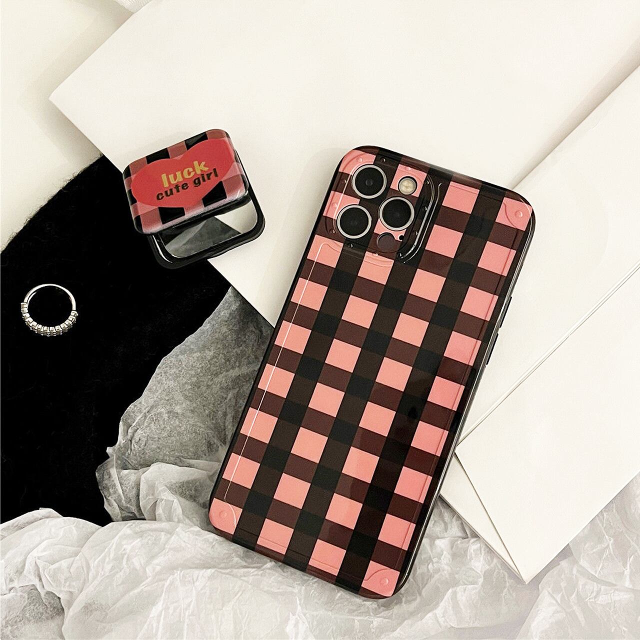 ギンガムPKグリップ付き iPhoneケースM211212-3
