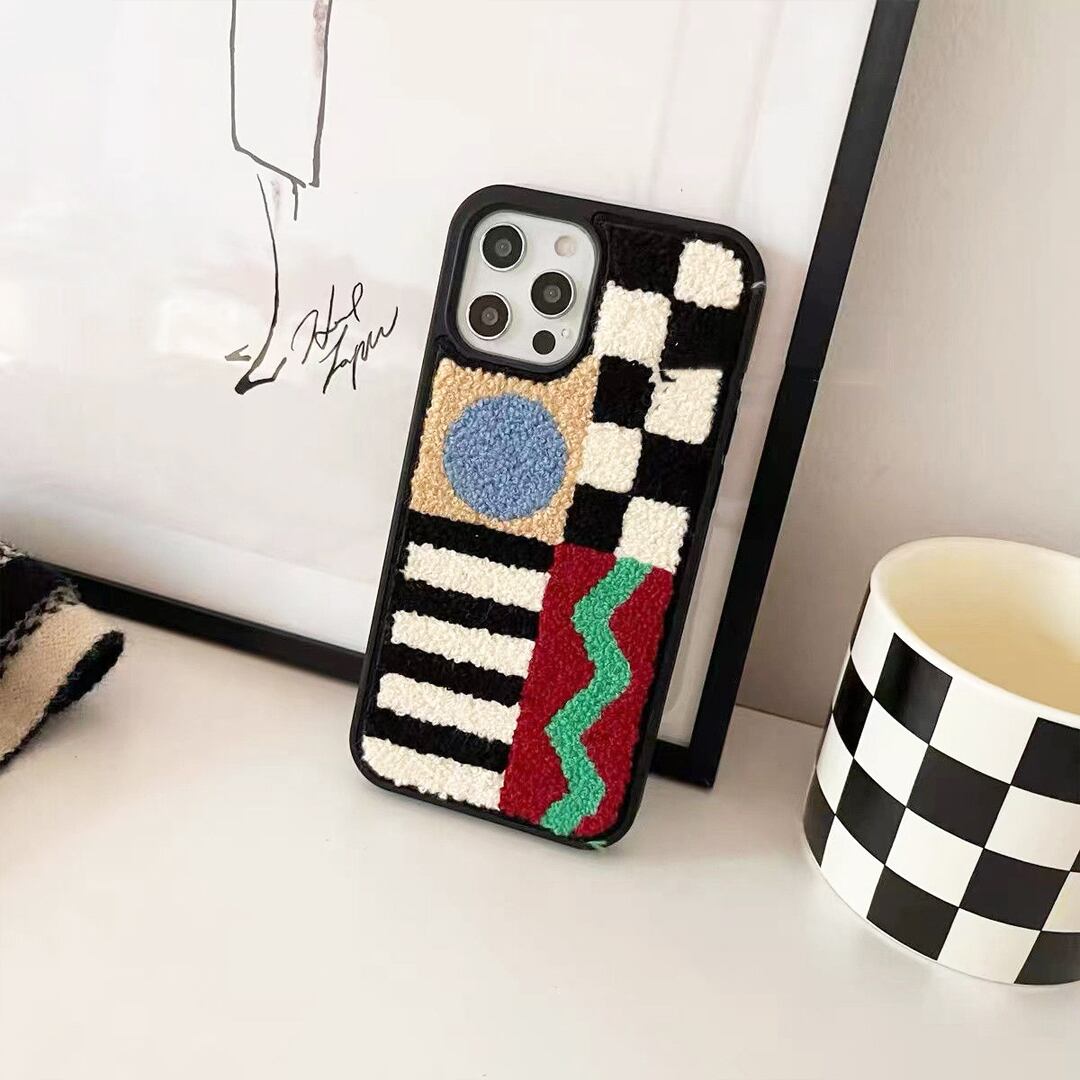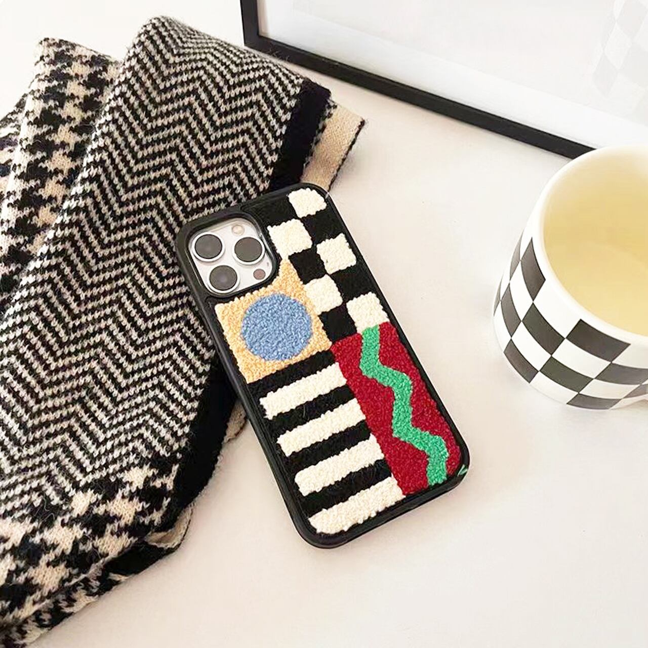幾何柄パイル刺繍 iPhoneケースM211212-13