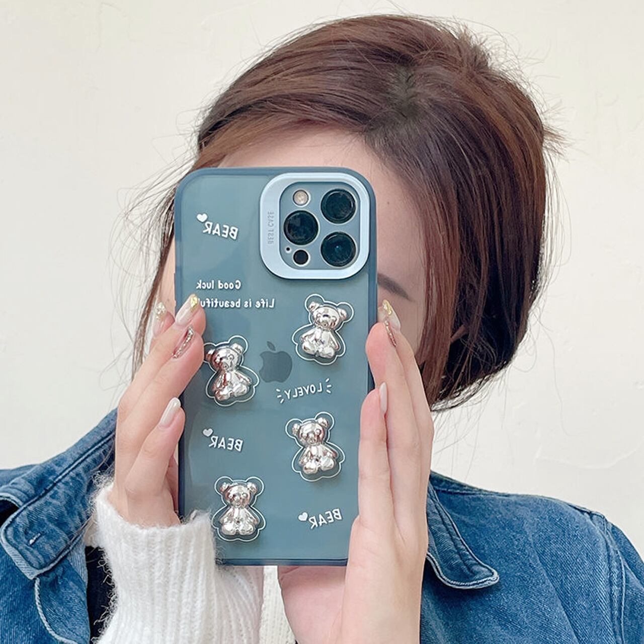 iPhoneケース☆彡 オーロラシルバーくま