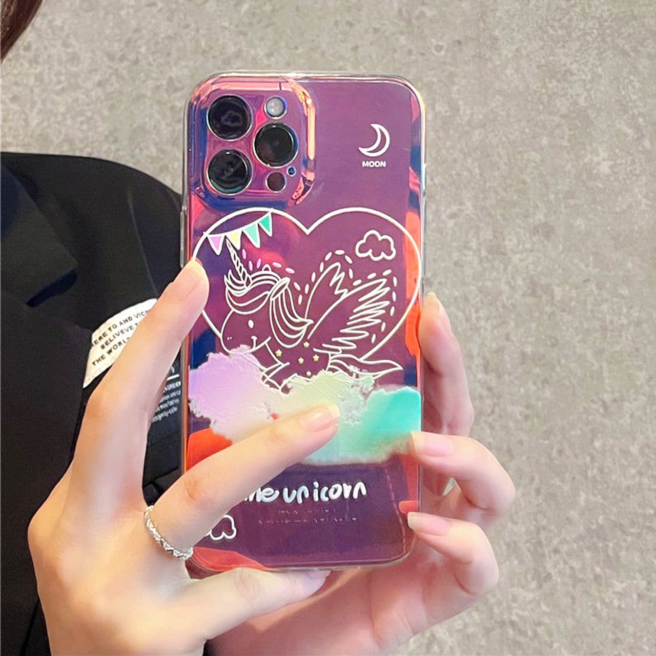 iPhoneケース☆彡 手描きオーロラユニコーン