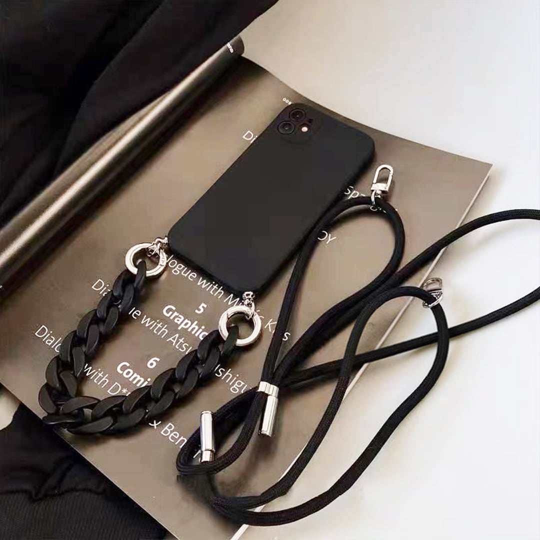 チェーンストラップ付BK iPhoneケースM220101-28