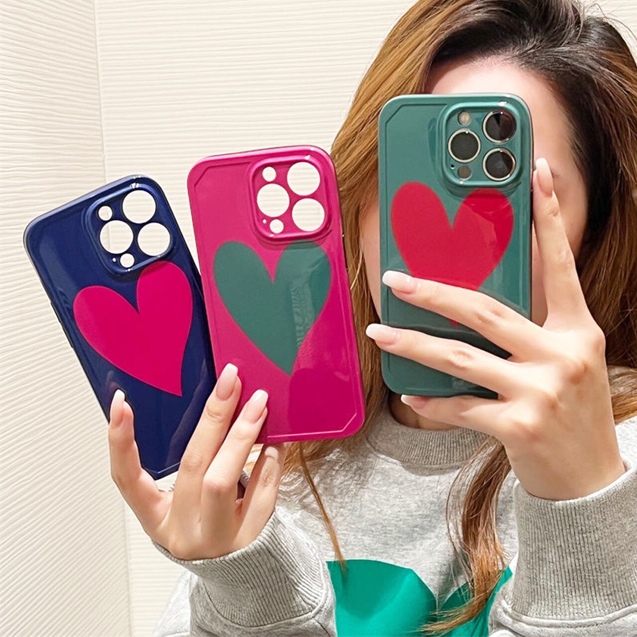 iPhoneケース☆彡 ハートバイカラー