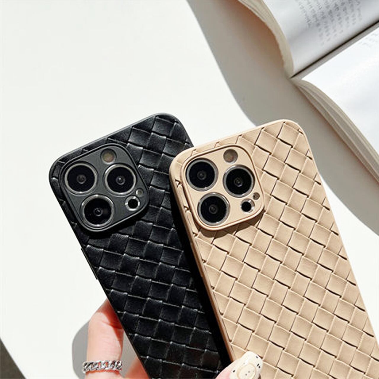 iPhoneケース☆彡 Fレザー編み模様3COL