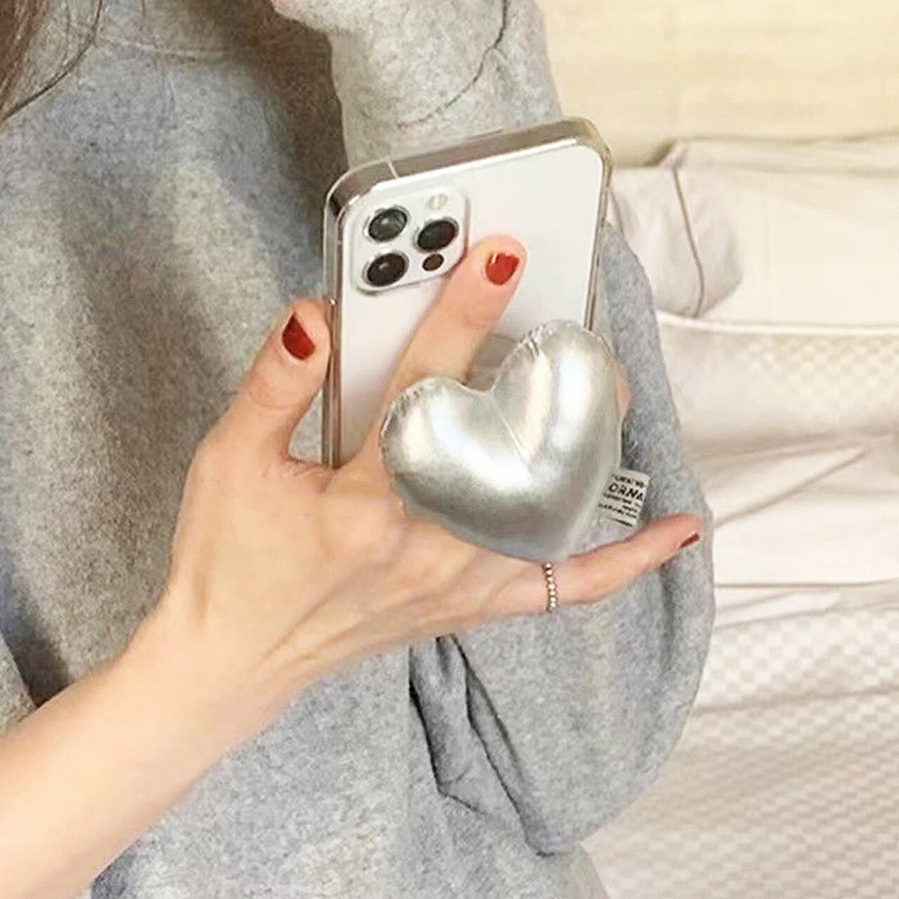 シルバーハートグリップ付 iPhoneケースM220303-30