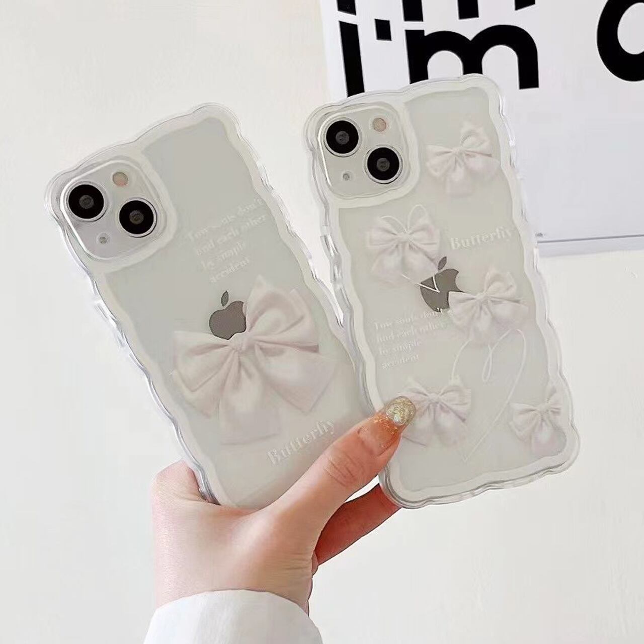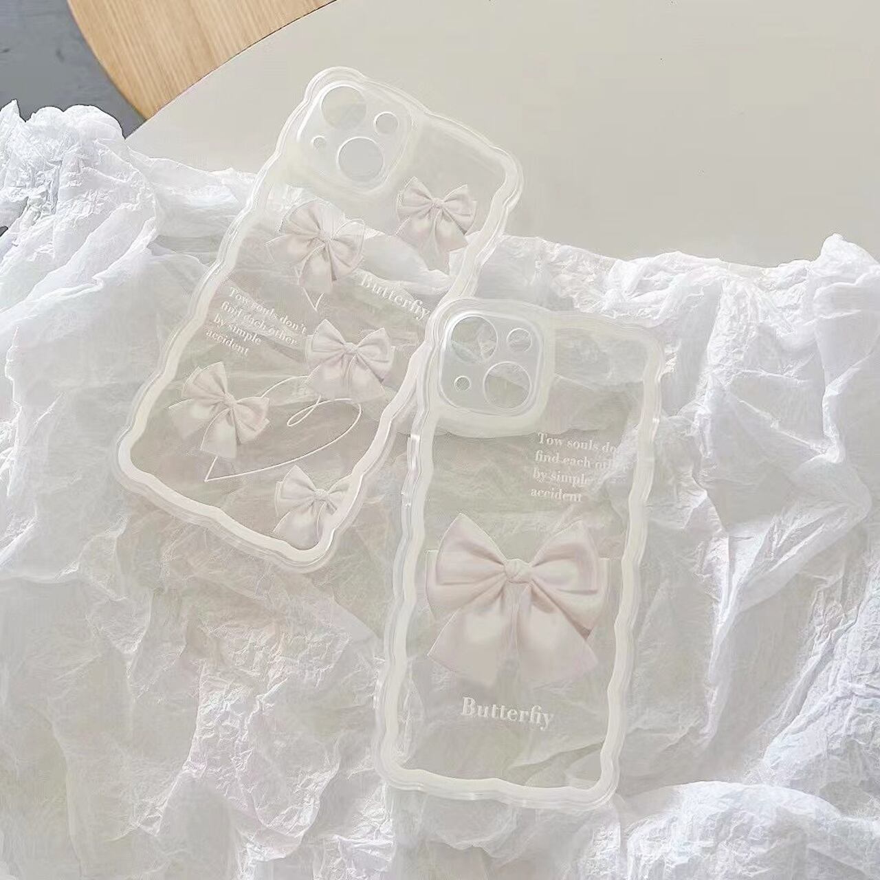 清潔感ある可愛い白のリボンモチーフのイラストケースです~♡