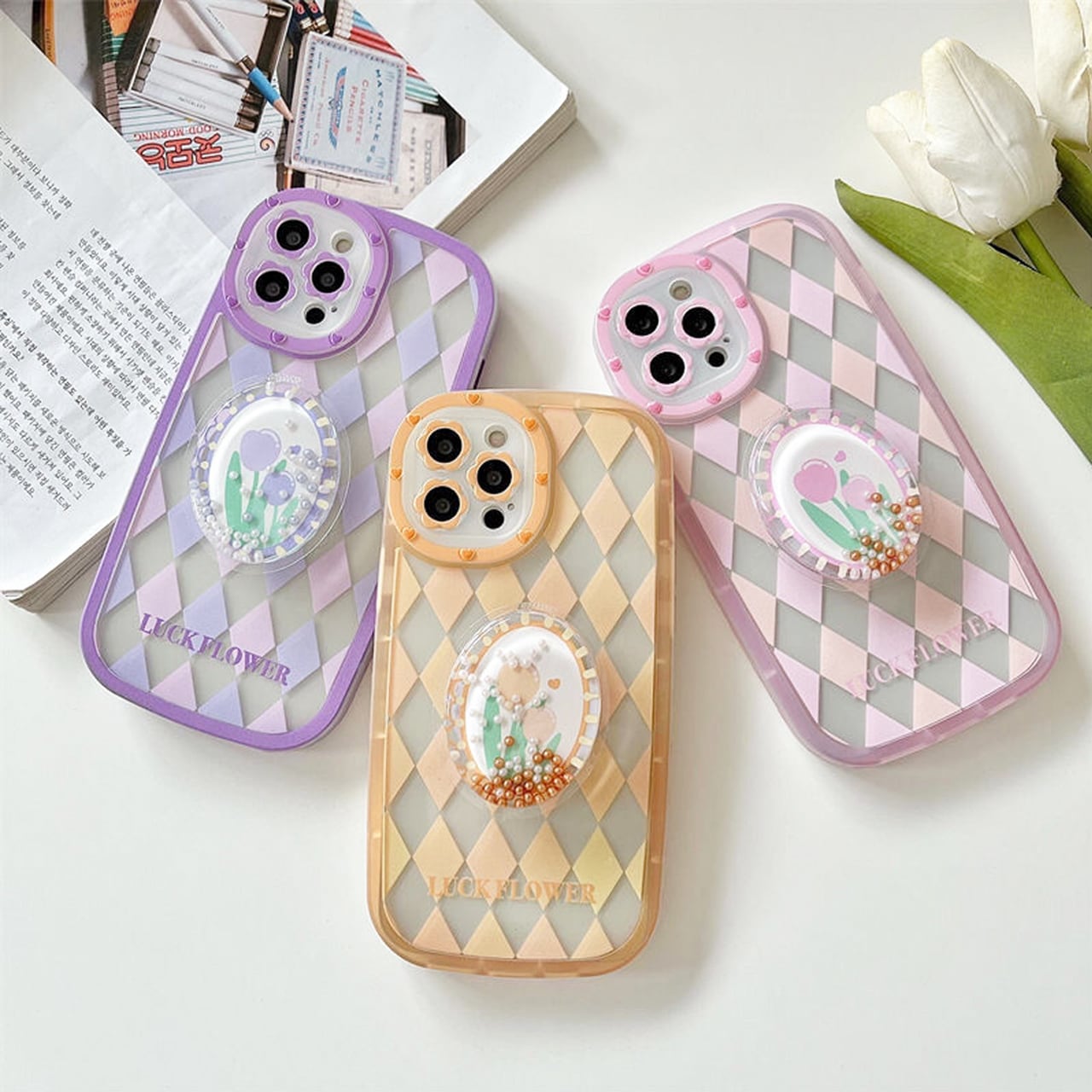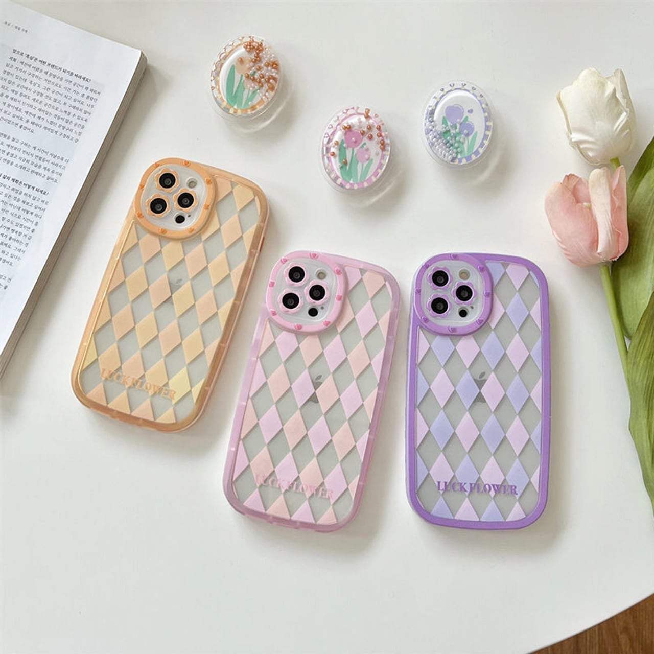 カラーは3色♡どの色もケースとグリップがマッチしてかわいい~ ((p'∀'q))♬
