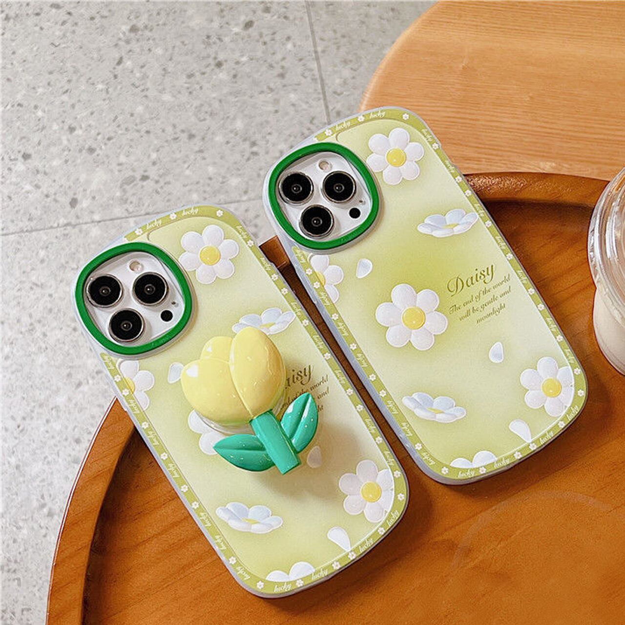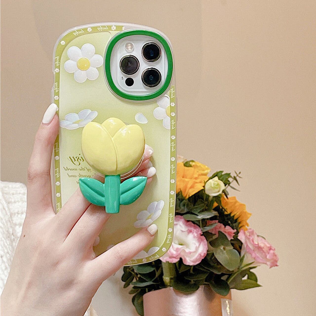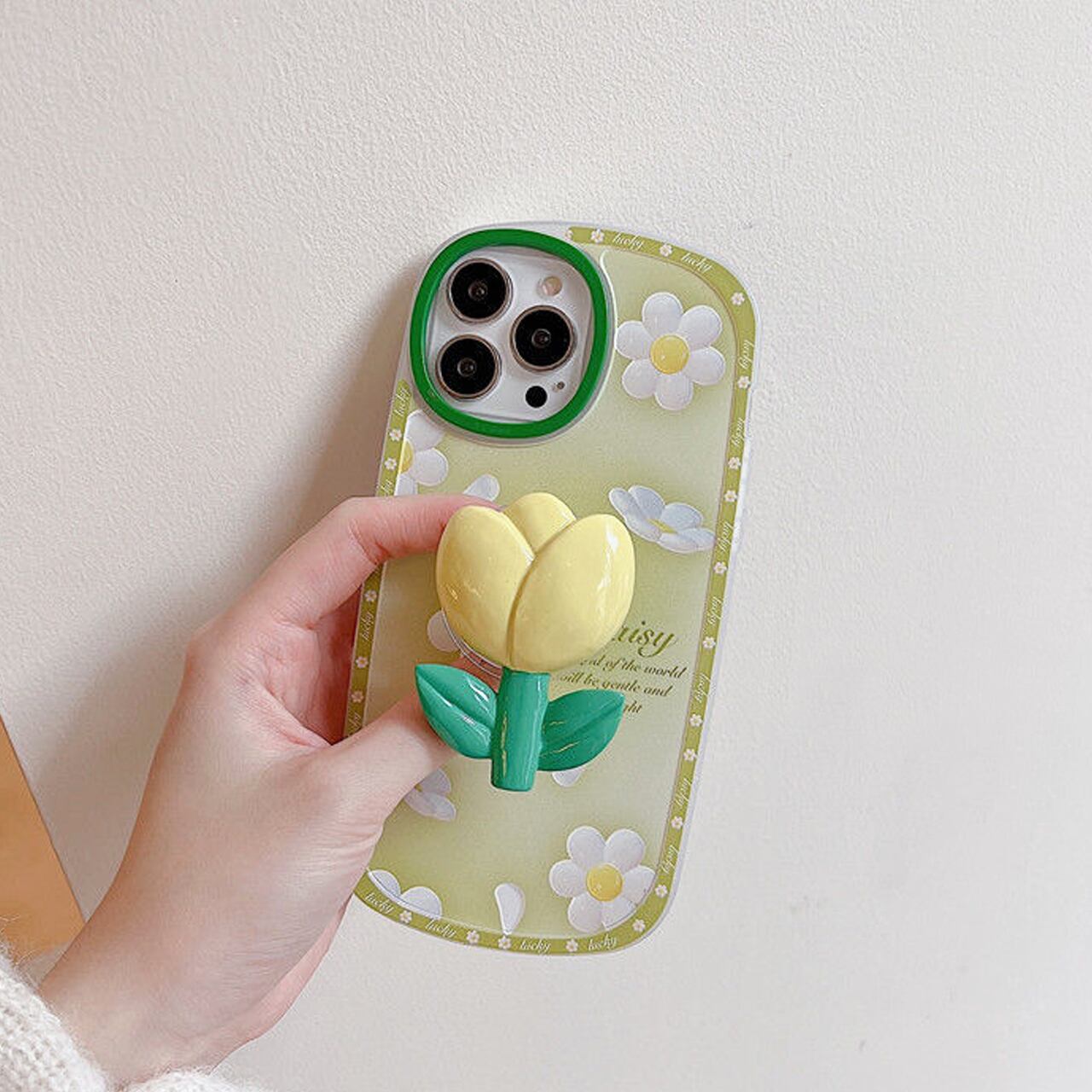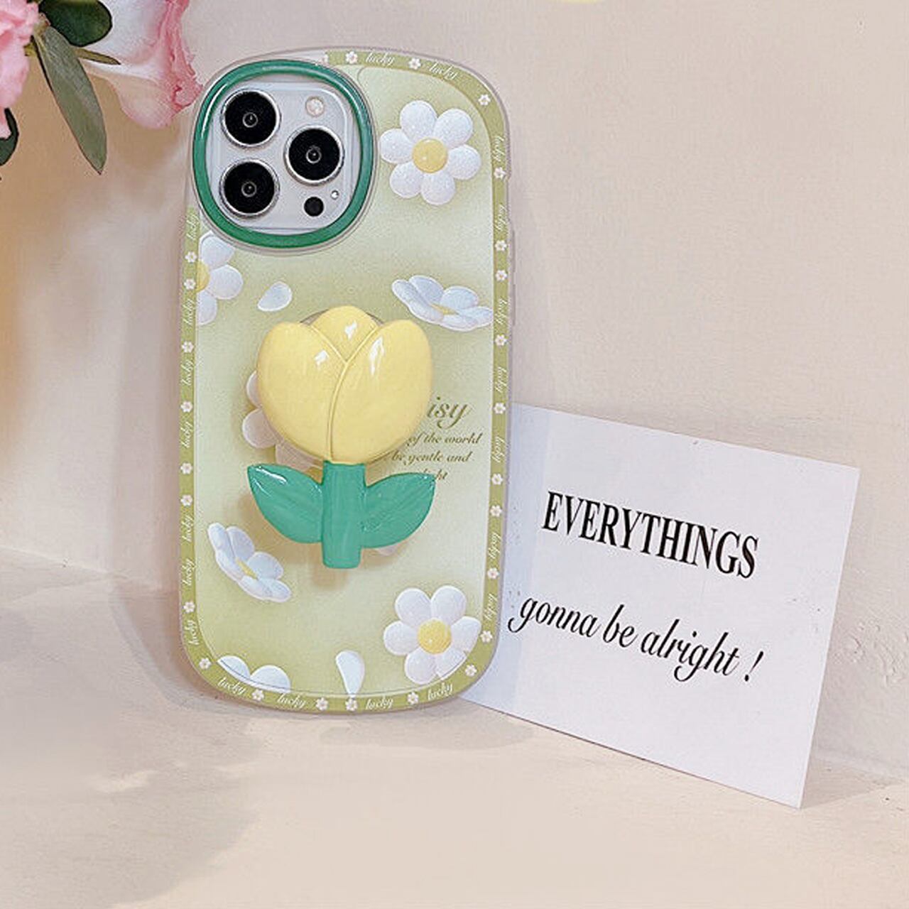 iPhoneケース☆彡 イエローフラワーグリップ付