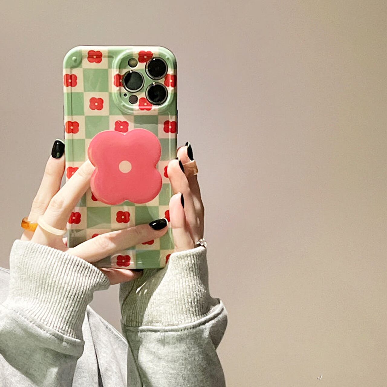 iPhoneケース☆彡 FLOWERコーラルグリップ付